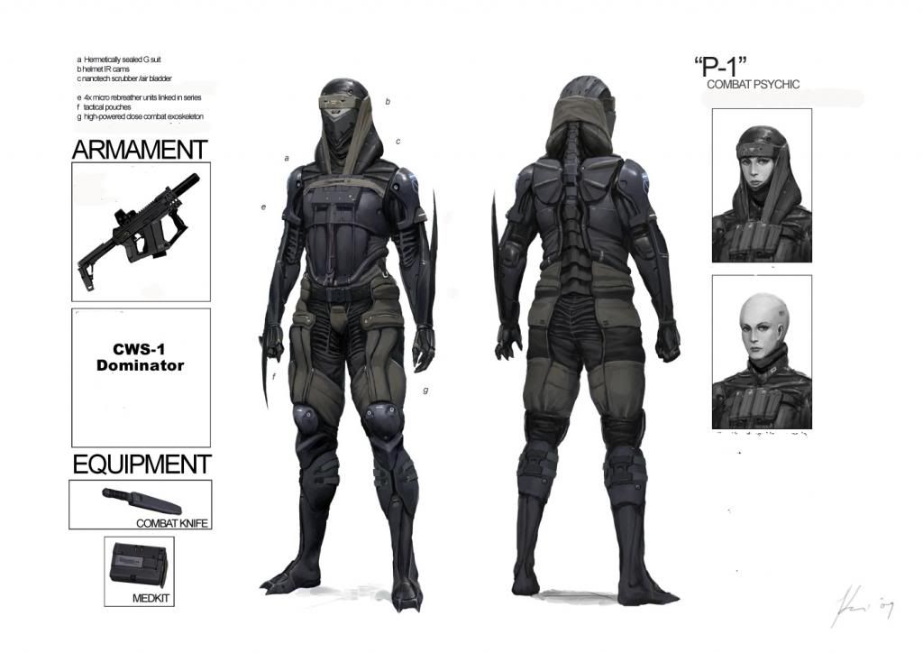 Designation- P-1 Combat 'Psychic' Armor Usage- Fifty specially trained professionals (see notes at bottom) Primary Weapon Issue- Secondary Weapon Issue- CWS-1 Dominator Additional Equipment- - Vibroblade (combat knife)