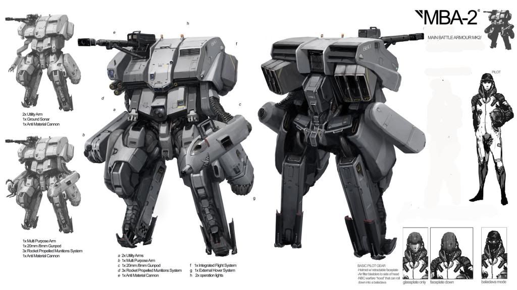 Designation- MBA-2 Main Battle Armor Usage- Specialized heavy assault suit Pilot Equipment- - Rebreather