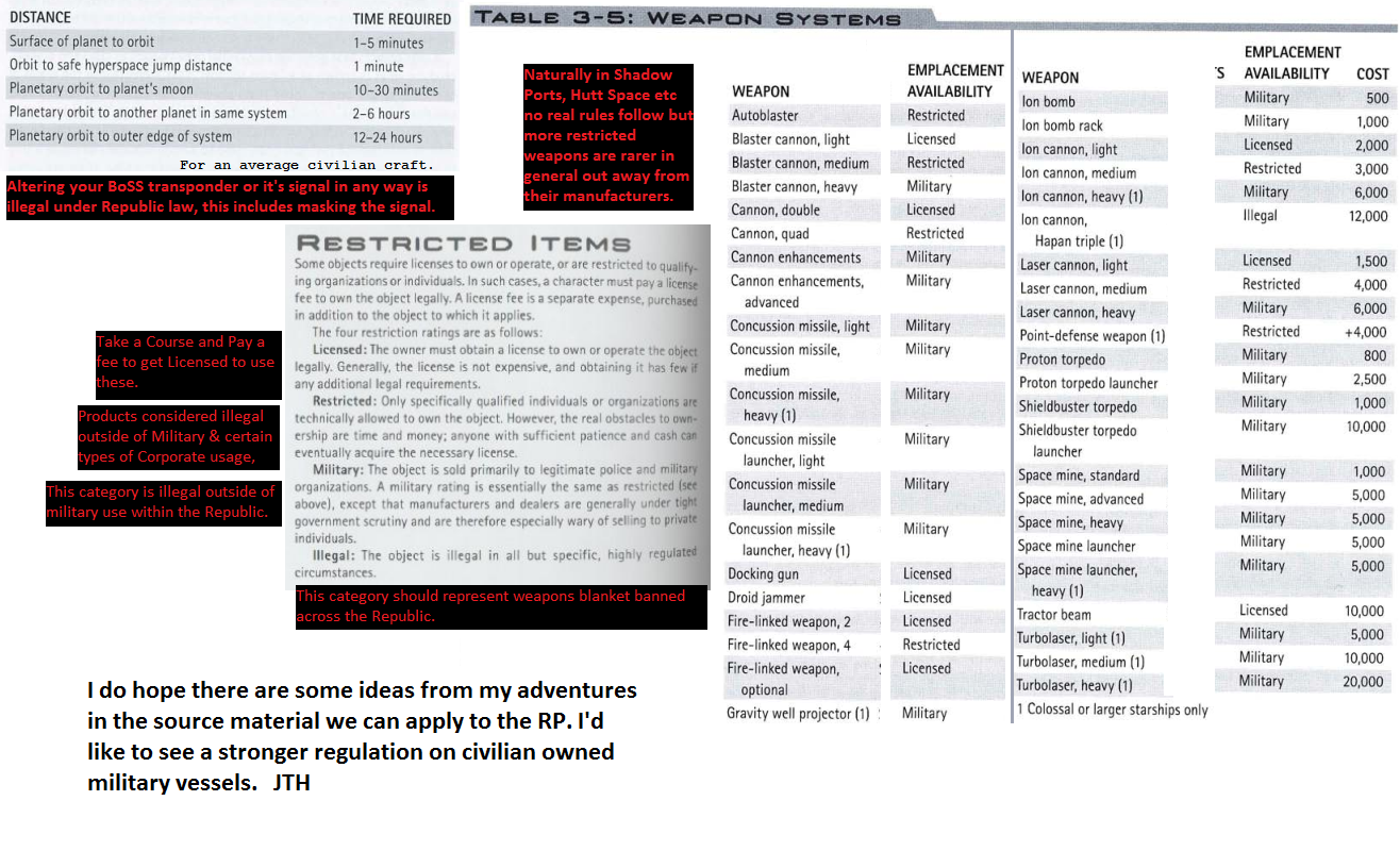 Here's a lot of useful date I drew from the RPG Sourcebooks about space ships, some stuff about regulations etc.